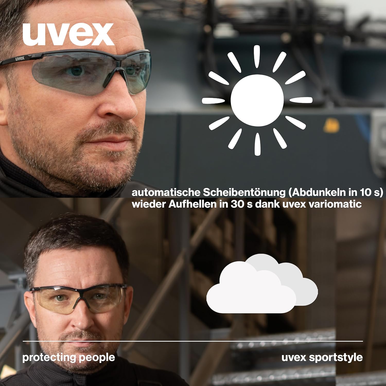 The Uvex Sportstyle 9193880 offers professional-grade eye protection with advanced Colormatic (photochromic) lens technology. The lenses automatically darken under bright sunlight and return to clear indoors, ensuring optimal vision and safety in every environment.
